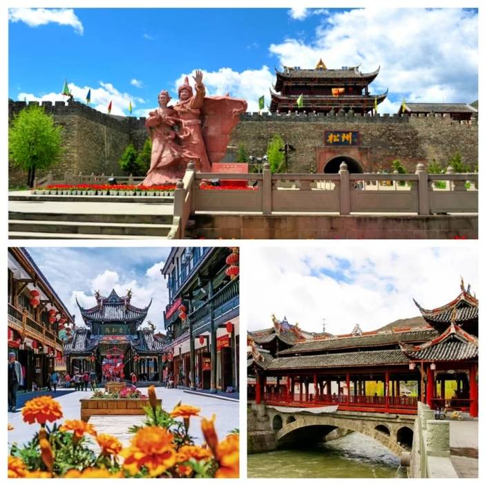之后经茂县,下午到【松潘古城】参观,古城墙始建于明朝,规模宏伟,气势非凡。得益于“茶马互市”的兴起,这里曾经是川、甘、青三省边区最大的贸易集散地之一。