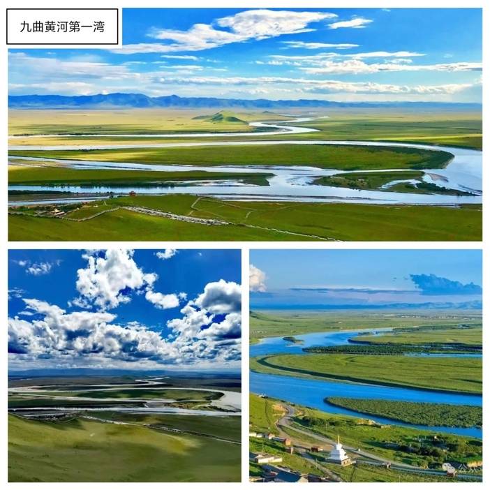 黄河在这片高原湿地上拐了无数道弯,一边是甘肃,一边是四川。这里蜿蜒流淌,湿地、草原、动物融合在一起。1.5公里木质栈道分3段,建议攀登至最高层"法螺观景台",预留40分钟,等一场绝美的日落。