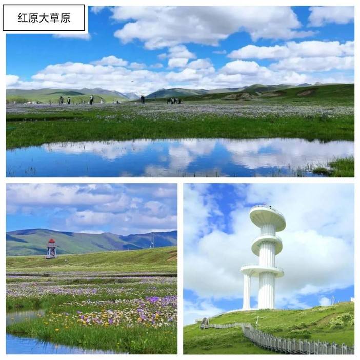 下午前往若尔盖草原核心景点【花湖】景区游玩(观光车30/人,敬请自理)一路草原风光,沿途是若尔盖热尔大坝草原,欣赏草原湿地景色,这里素有"川西北高原的绿洲"之称,是我国三大湿地之一。