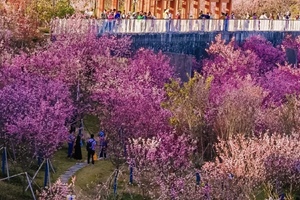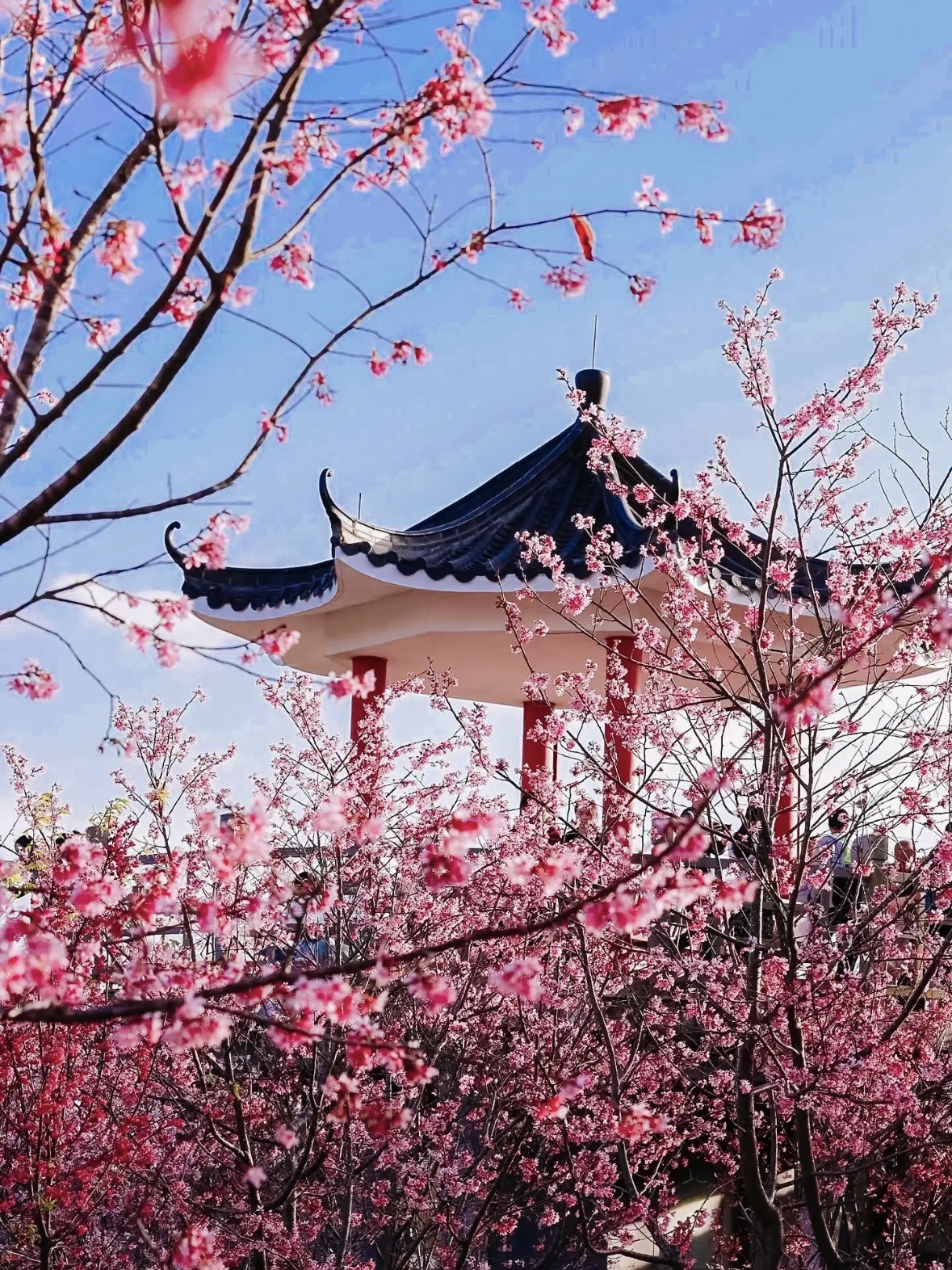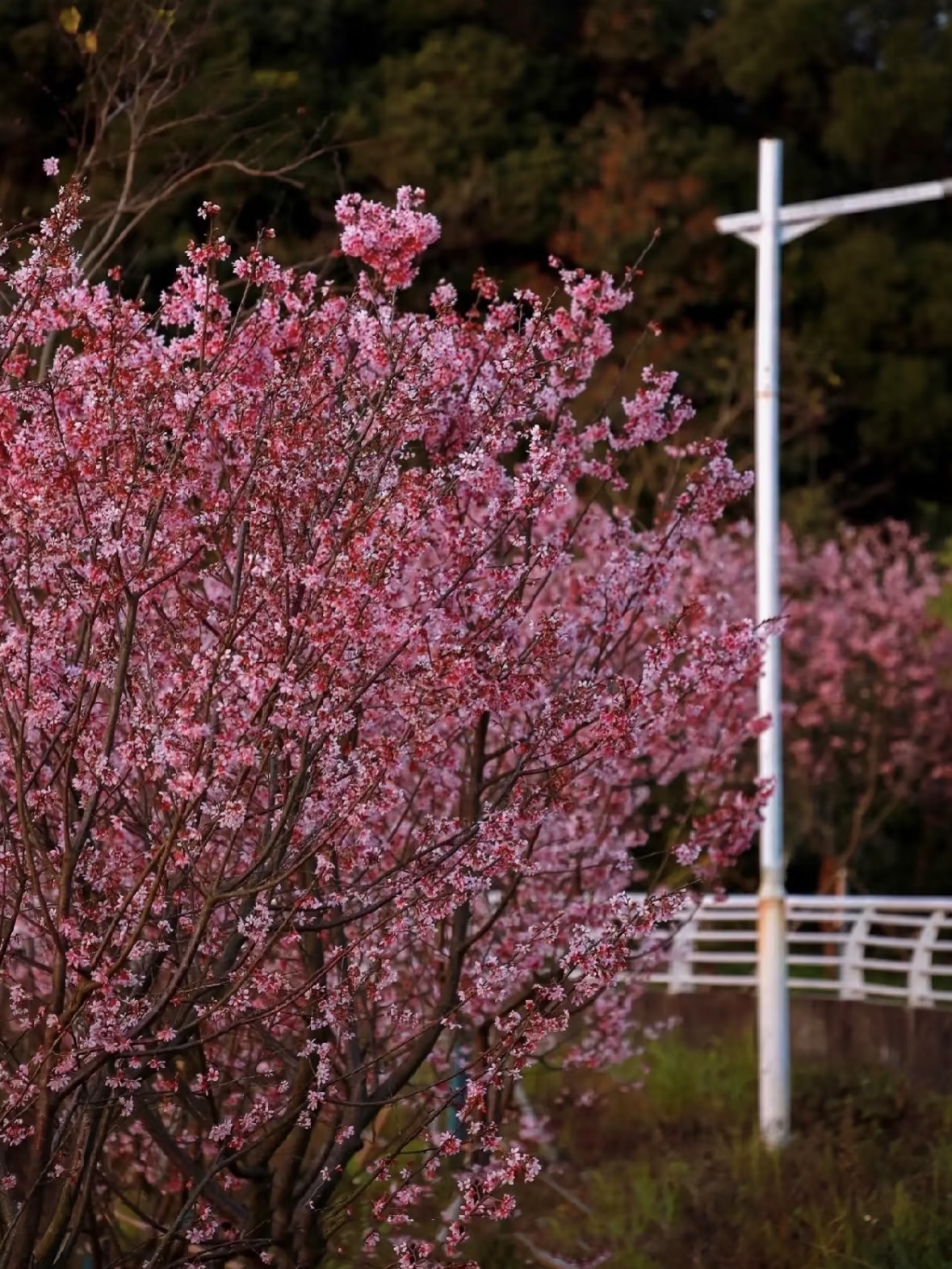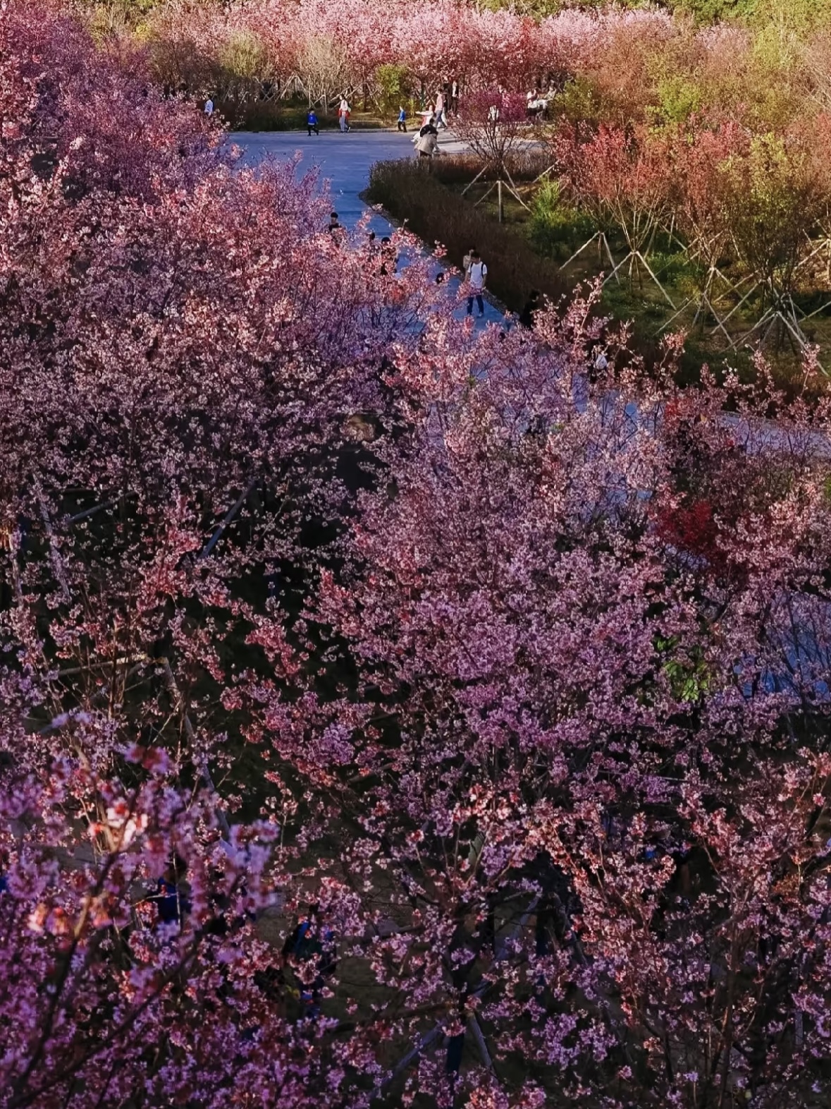 樱花林种植了多个品种的樱花,包括中国红、广州樱、寒绯樱、小乔、富贵樱等。这些樱花在每年的2月到3月盛开,形成一片粉色的花海,非常壮观‌.