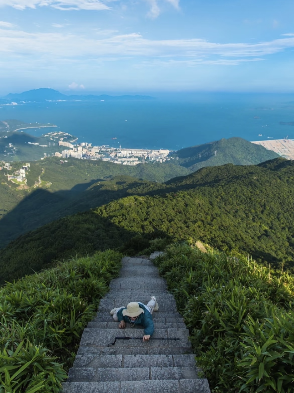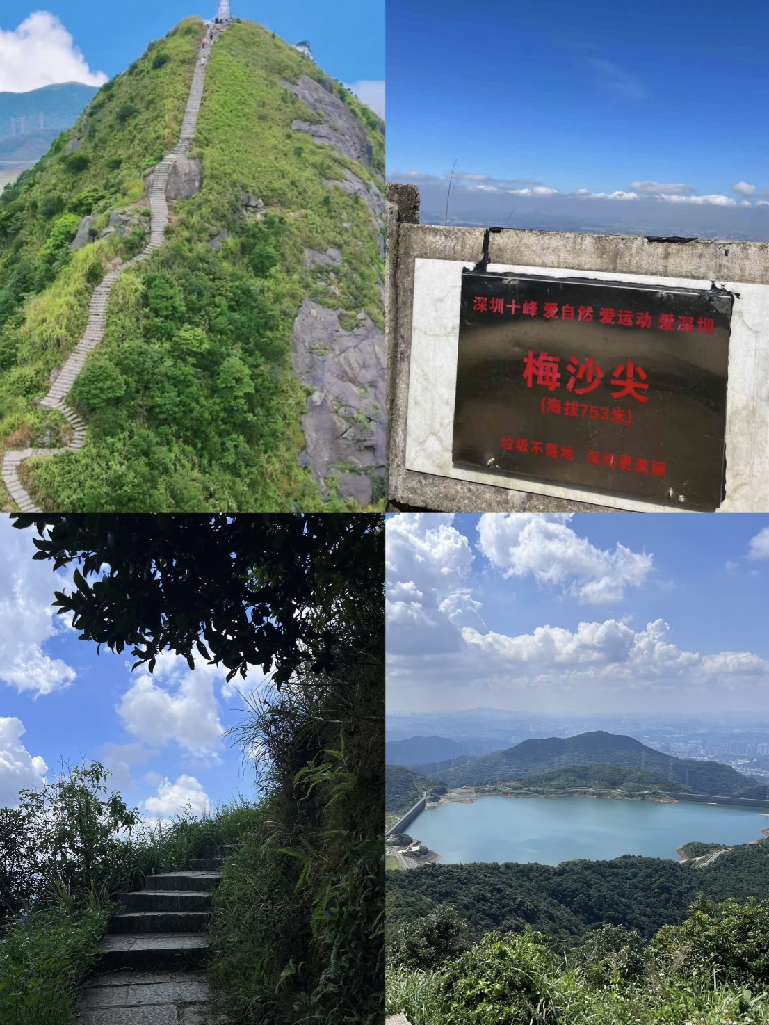 12:30 左右徒步前往深圳最美天梯观景台-深圳十峰梅沙尖;欣赏三面环海绝美景观,(体力不支的不想去梅沙尖的,也可以不去需要自费15元乘坐云海巴士从梅沙尖登山口坐到大华兴寺停车场)。