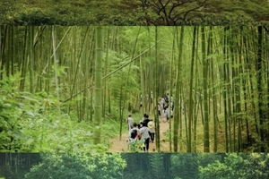 一路上林茂竹翠,藤萝缠绕,一片翠绿