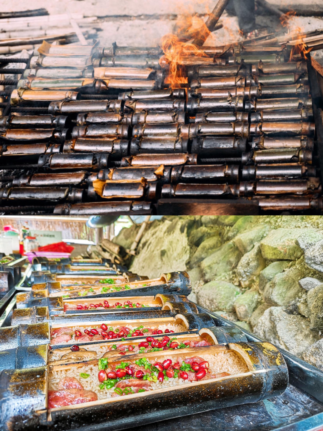途径最美乡村,享用农家美食,当地特色竹筒饭!